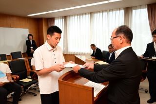 その後、トップアスリートの輩出を目的に選手を支援する市トップアスリート育成強化支援事業の指定選手認定式が行われ、菅野さんを含む9人が認定を受けました。新関市長は「日本を代表する選手となれるよう、常に高みを目指して頑張ってもらいたい」と激励しました。