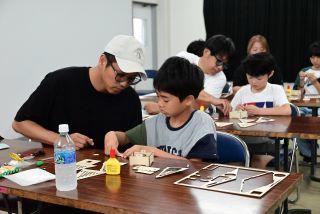 8月3日、市農業センターで親子ふれあい環境教室が行われ、9組の親子が参加しました。地球温暖化を抑制するための講話を聞いた後、省エネのLEDソーラーハウスを作製しました。複雑な配線に苦労しながら子どもたちが作り上げたソーラーハウスは全てが見事に点灯し、会場からは達成感に満ちた歓声が上がりました。参加者は講話・工作を通して、環境保全についての理解を深めていました。