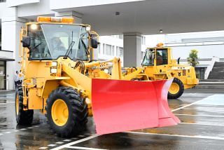 11月28日、市役所で、除雪車出動式が行われました。市では冬期間の道路の交通を確保するため、建設業者などが中心となり道路の除雪を行います。今季は35社124台の除雪車が、574.6㌔の道路の除雪に当たります。除雪事業者を代表し、東海林建設㈱の安食猶晴さんが「知識と経験を生かし、信頼される除雪作業を行います」と決意表明。その後、除雪車が一斉に出動し、本格的な冬の到来に備えました。