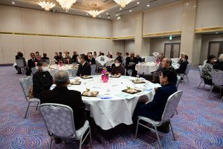 11月19日、天童ホテルで、結婚50年を迎えた夫婦をお祝いする天童市金婚賀詞贈呈式が開催され、20組が参加しました。金婚者夫婦を代表して賀詞の贈呈を受けた東海林亨さん・美津子さん夫婦は、「家庭を持ち50年、長い年月を一緒にひたすら真面目に生きてきました。多くの時代を乗り越えここまでやってきたので、これからも2人そろって長生きしていきたいです」とあいさつ。参加者は踊りや演奏等を鑑賞しながら、思い出を語り合っていました。