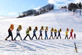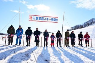 天童高原スキー場開きと安全祈願祭が行われました。式では、NPO天童高原の緑三郎理事長が「大人から子どもまで喜んでもらえるスキー場にしたい」とあいさつ。関係者によるテープカットと、市スキースポーツ少年団のプラカードデモンストレーションでオープンを祝いました。式終了後には、紅白餅や納豆汁が振る舞われ、オープンを待ちわびたスキーヤーが早速スキーを楽しんでいました。