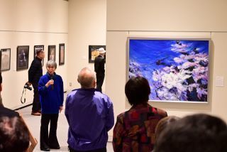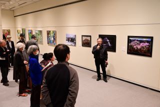 12月3日から21日にかけて、市美術館で第27回市民作品展が開催されました。市内の美術団体に所属する作家や県展以上の公募展で実績のあった作家約60人に加え、市内の園児から短大生までが制作した絵画、写真、書など280点が展示されました。初日の開会式に続いて行われたギャラリートークでは、出品者が自身の作品に込めた思いや工夫した点などを話していました。