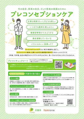 ケアとは「妊娠前からの健康づくり」を意味します。若いうちから妊娠・出産を含めた将来のライフプランを考えて、自分の生活に向き合い、健康を維持していくためのものです。