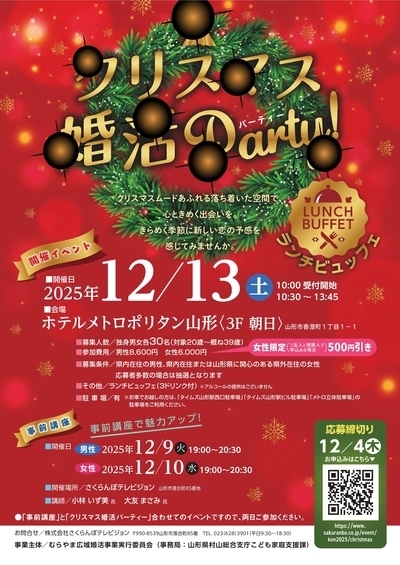 天童市「緑の迎賓館アンジェリーナ」にてクリスマス婚活パーティーを開催します!