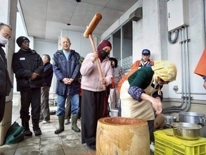 会場には多くの参加者が集まり、活気に満ちた雰囲気の中、周りの「よいしょ!」という掛け声が響き渡りました。また、子どもや外国出身の参加者も餅つきに挑戦し、初めての体験に笑顔があふれました。