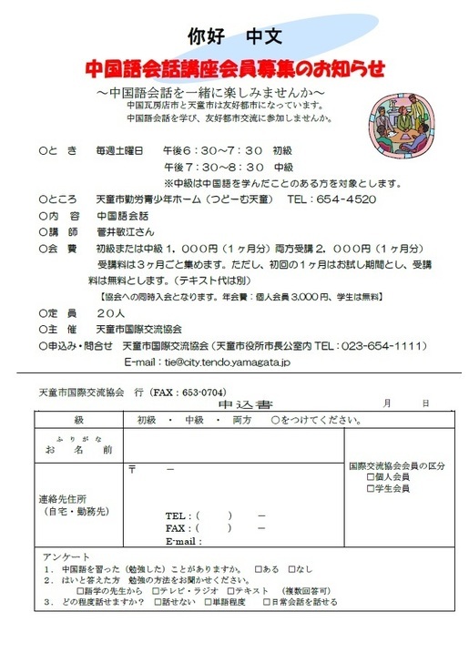 天童市国際交流協会事務局 宛